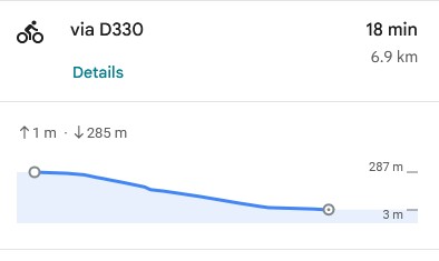 It was hot, humid and a bit cloudy start when we finally checked out. We cycled back the direct route to the Voi Verte and picked up the long straight road pointing like an arrow toward the distant hills. That set the theme for the day .... "Are we going UP there? ....(pedals hard, phew, the ebike made it). Then " are we going DOWN there?". A nerve racking hairpin decent later (thank heavens for the hydraulic brakes) - "did we REALLY come down from there? . Repeat from one village to the next. WTF !!! Even the few travelling tourists were driving with caution. What must life have been like before the motor car?